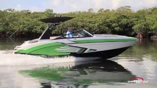 Twin engine power excites and delights. No matter how you dial in the power, when the throttle goes down you'll enjoy G-forces rarely experienced on the water. Throttle response is right now. Control, particularly in demanding turns, is pin-point accurate. Weekends will be a non-stop party on the water. U-shaped seating says "welcome aboard." Extensive storage space keeps everything tidy. An enclosed head is a welcome plus on long-distance jaunts. The bold graphics in the jet boat world are even more striking when they stretch across the boat's 24' centerline. A standard Folding Arch Tower adds the perfect high-performance accent. One thing is certain...nobody will doubt that you're in a Chaparral.