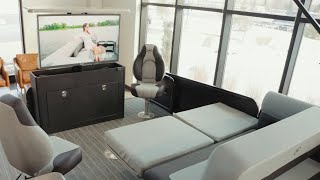 Discover the heart of the market perfection with the all-new Solaris.You’ll have the coolest pontoon on the water when you choose the modern luxury and performance of Solaris. Featuring exclusive Premier Cool-Touch fabric technology and new modern color choices, Solaris beats the heat with furniture that’s cooler to the touch, even in direct sunlight. You’ll also experience the best ride in the industry thanks to the all-new supercharged PTX chassis. Plus the added comfort and convenience of the Captain-First helm; signature styling of a transparent bow gate, and award winning innovations like our Revolution Booth and Ricochet Ladder combine to make Solaris the best heart-of-the-market pontoon.